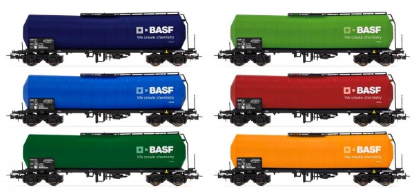 H0 D BASF Kesselwagen Set 6x, 4A, Ep.VI, farbig, " BASF " , etc..................
