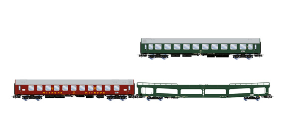 H0 D DR Autoreisezug Set 3x, 4A, Ep.IV, L=867mm, grün- rot, etc................................................