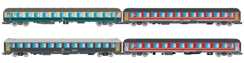 H0 I FS DB NS Reisezugwagen- Set 4x, 4A, Ep.V, " Italien- Holland- Express, blau- beige, etc.......................