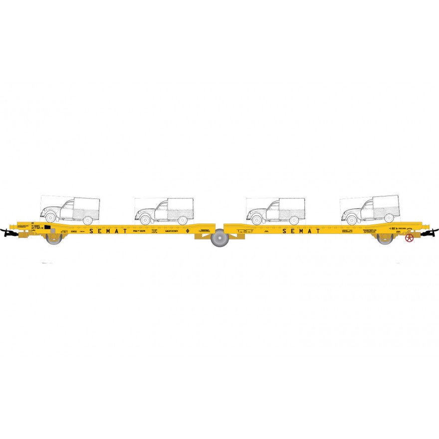 H0 E RENFE Autotransportwagen , 3A, bel., Ep.IV, " gelber Semat ", etc..............