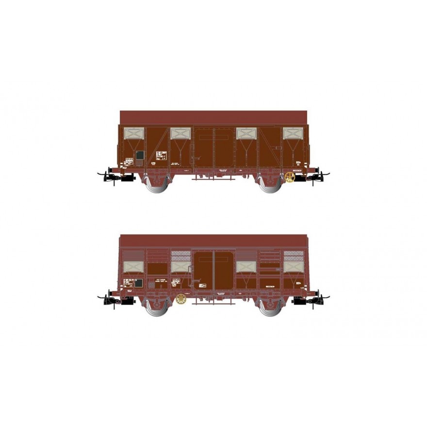 H0 F SNCF Güterwagen Set 2x, ged., 2A, Ep.IV, braun, " FRET- EXPRESS ", etc....................................
