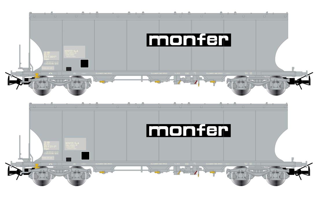 H0 I FS Silowagen Set, 2teilig, 4A, Ep.IV- V, L= 458mm, gewölbte Silowände, grau, " Monfer "