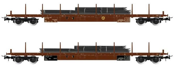 H0 I FS Flachwagen Set, Rgs, bel., 2teilig, 4A, Ep.V, L= 458mm, braun, " Stahlblech "