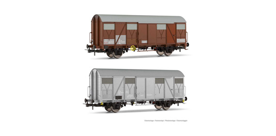 H0 I FS Güterwagen Set, 2teilig, ged., VGhs, VGs, 2A, Ep.IV- V, offene Lüftungsschlitze, braun, hellgrau, etc.............