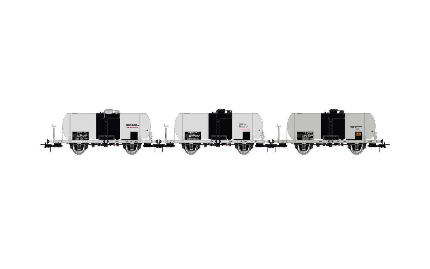 H0 I FS Kesselwagen Set 3x, 2A, Ep.IV- V, Bremserbühne 3x, silber, schwarzer Streifen, etc......................