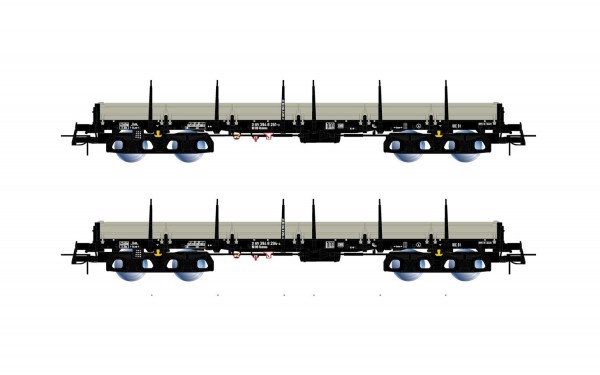 H0 D DB Flachwagen Set 2x, Remms, bel., L=322mm, 4A, Ep.IV, " Thyssen ", etc...................