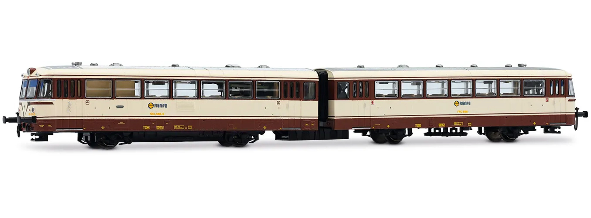 N E RENFE Schienenbus 2teilig, Reihe 591 500, 2A, Ep.IV, L= 172mm, R 92mm, " Ferrobus, creme- braun, etc...................................................