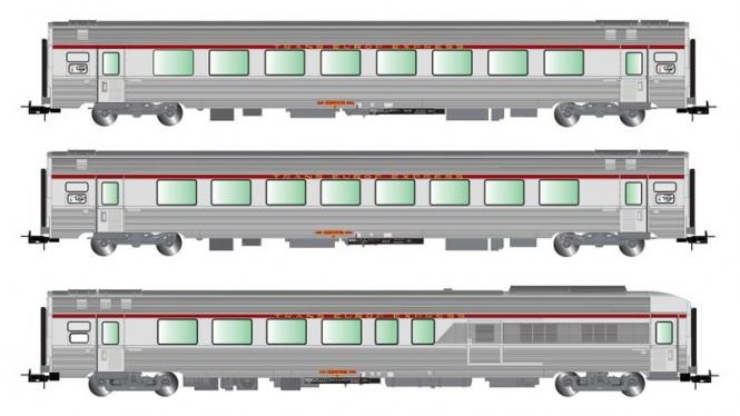 H0 F SNCF Reisezugwagen Set TEE, A8u, A8tu, Vru, 3teilig,   4A, Ep.IV,   " Mistral 69"