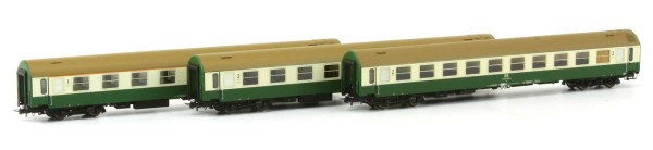 H0 D DR Personenwagen OSShD B Set, Kl.1, 1/2, Liegewagen, 3teilig, 4A, Ep.IV, L= 846mm, grün beige
