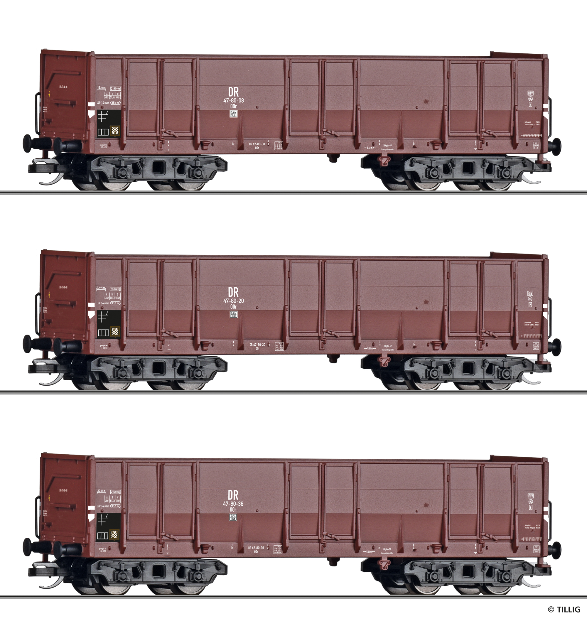 TT D DR Güterwagen-Set 3x offene Güterwagen 8A Ep.III, etc...............................................................