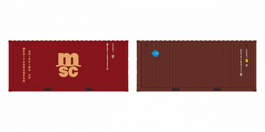 H0 Zurüstteile Container Set 2x, " MSC Hnedy LC+ Blue sky hnedy, Ep.VI, etc..........................................